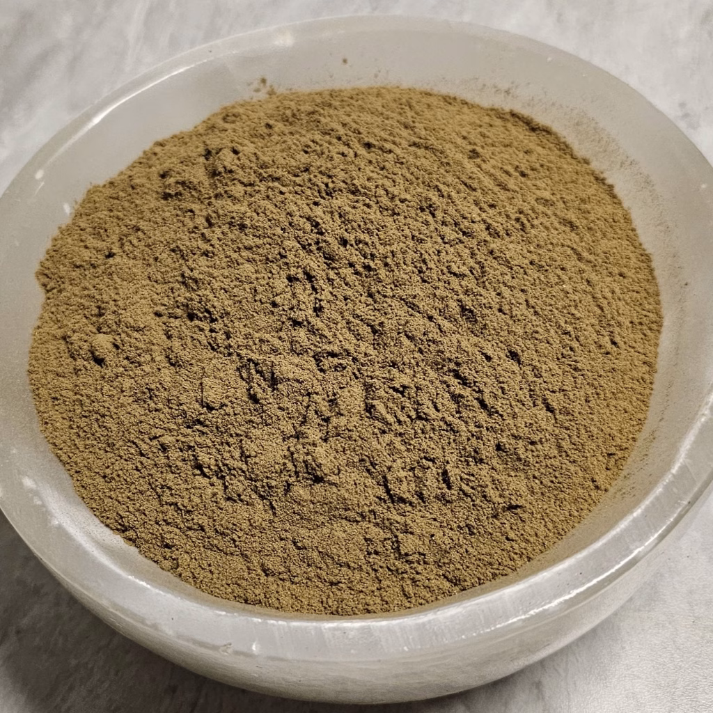 - Appearance: Light tan to brown powder with a fine texture.