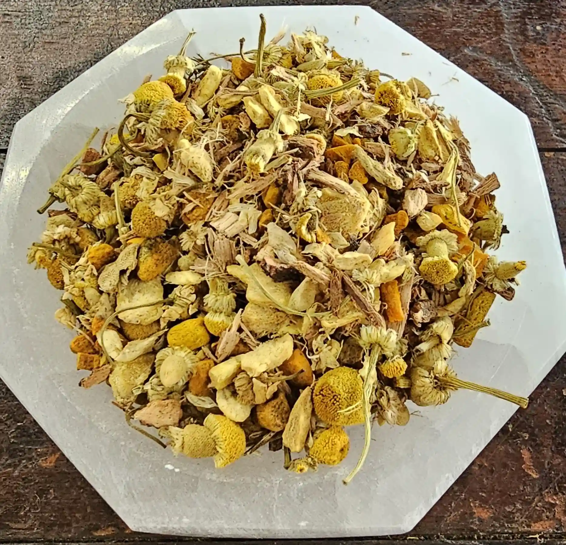 Using White Willow Bark, Turmeric Root, Ginger Root, and Chamomile Flower in a fibromyalgia tea blend can potentially help manage symptoms such as chronic pain, inflammation, muscle stiffness, digestive issues, anxiety, and poor sleep — all of which are commonly experienced by those with fibromyalgia.