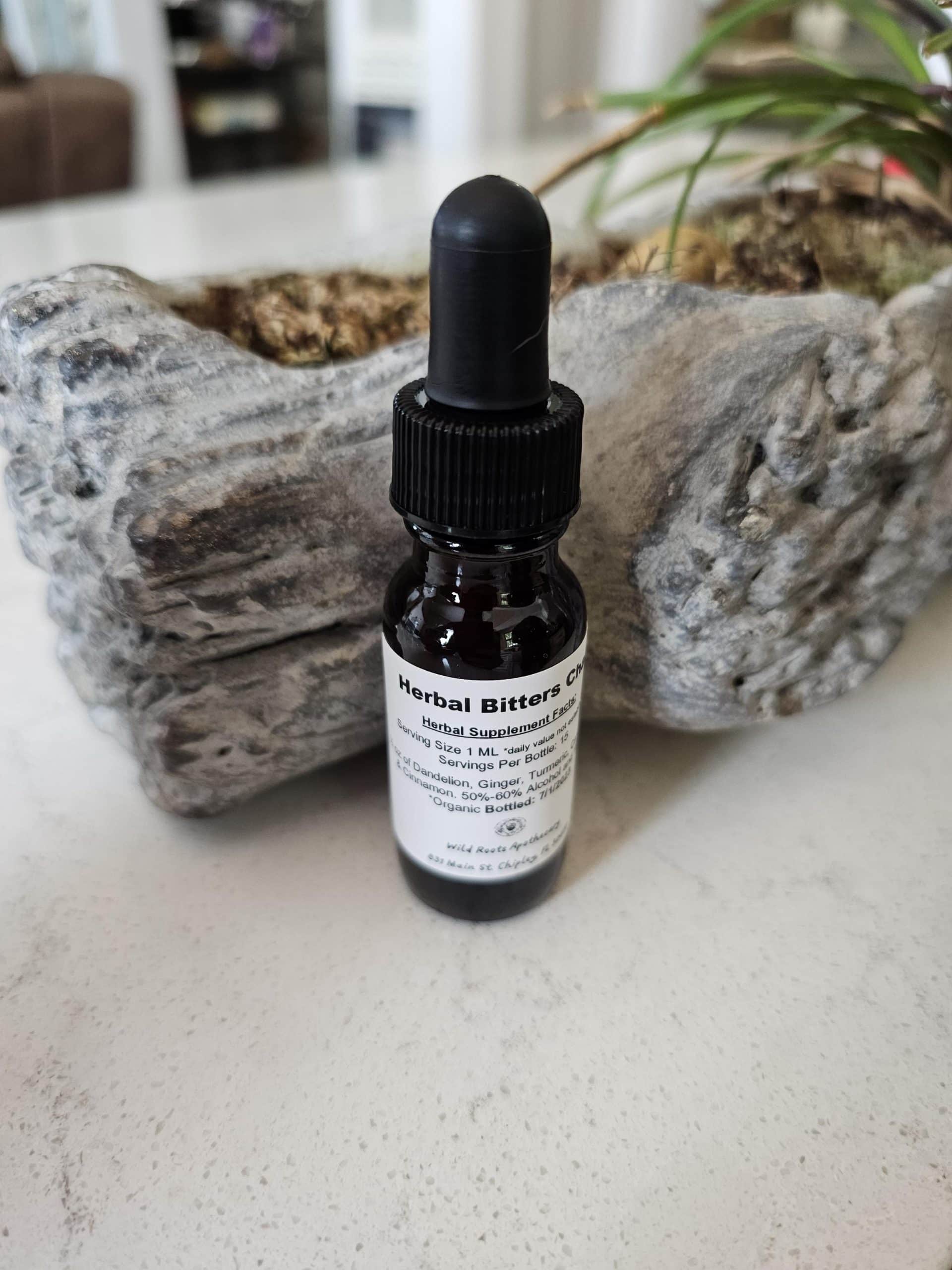 ½ oz of Dandelion, Ginger, Turmeric, Cardamom, & Cinnamon. 50%-60% Alcohol and Water. *Organic