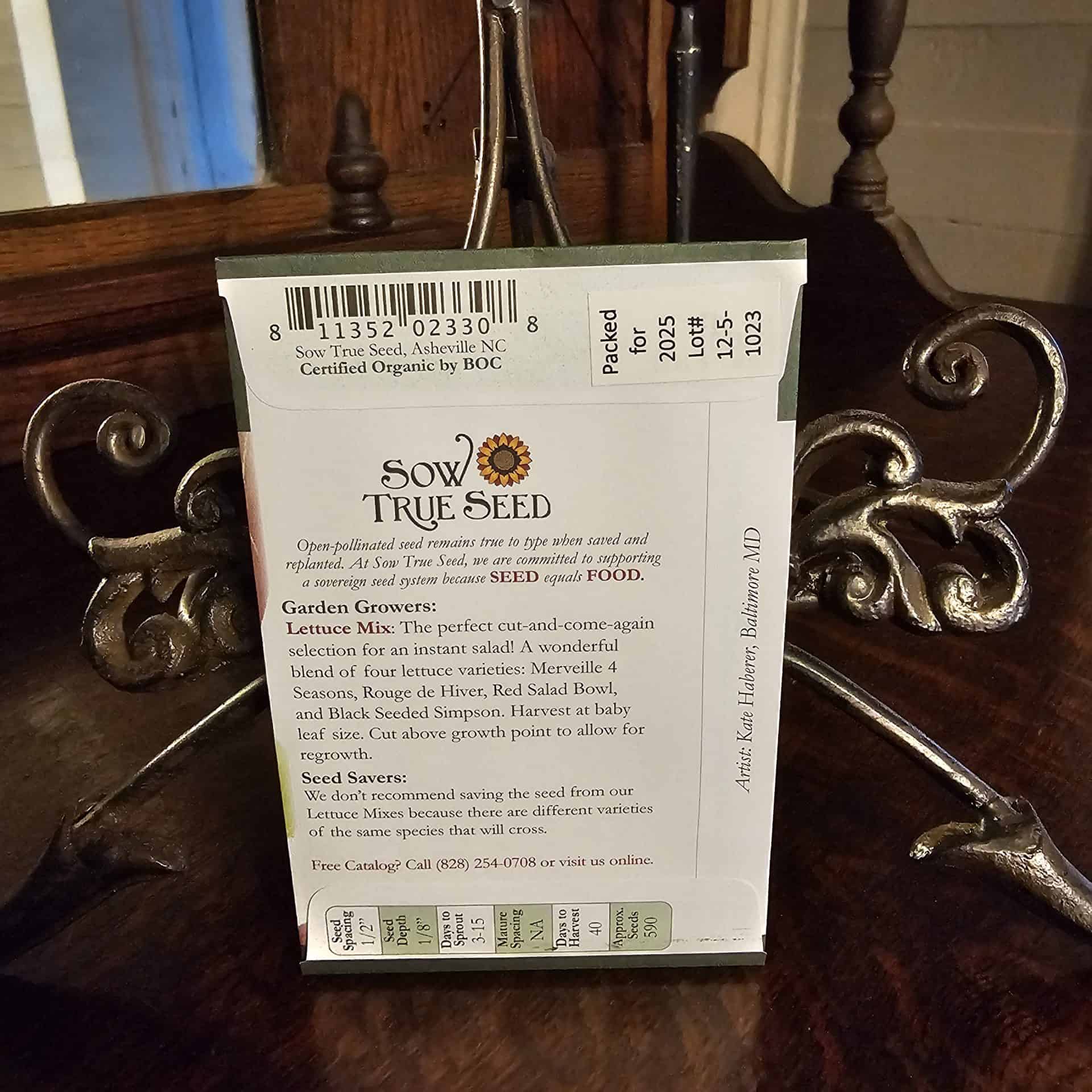 The perfect cut-and-come-again selection for an instant salad! A wonderful blend of four lettuce varieties including Merveille 4 Seasons, Rouge de Hiver, Red Salad Bowl, and Black Seeded Simpson. Harvest at baby leaf size. Cut above growth point to allow for regrowth.Â