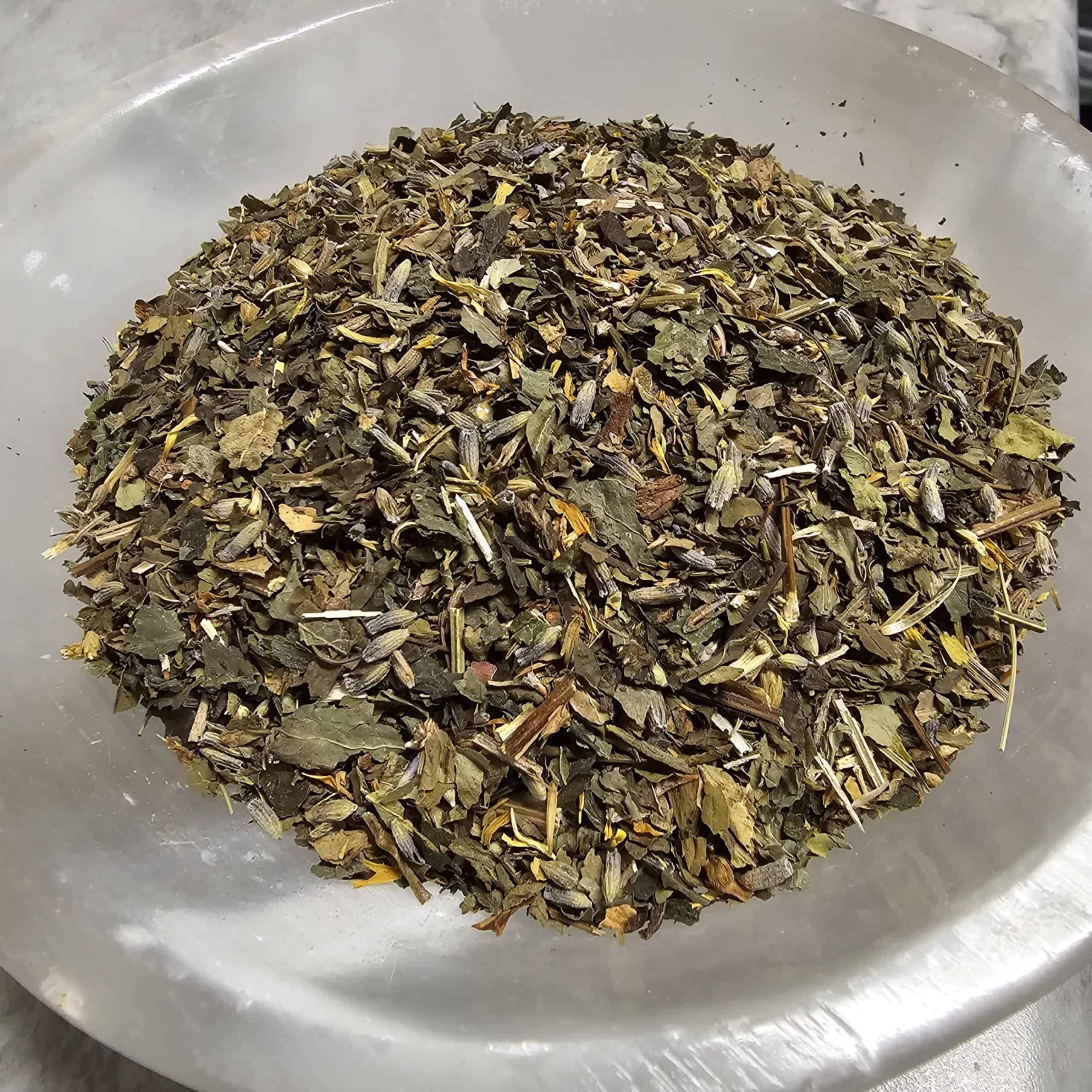 Ingredients: Sample Size 6 grams (2-4 servings) of Dandelion Leaf, Echinacea, Yarrow, Thyme, Wood Betony, Peppermint, Lemon Balm, Lavender Flowers, and Calendula Flowers. Available in 10 & 20 Cups (10 Cups = 16 Grams and 20 Cups = 32 Grams).Â