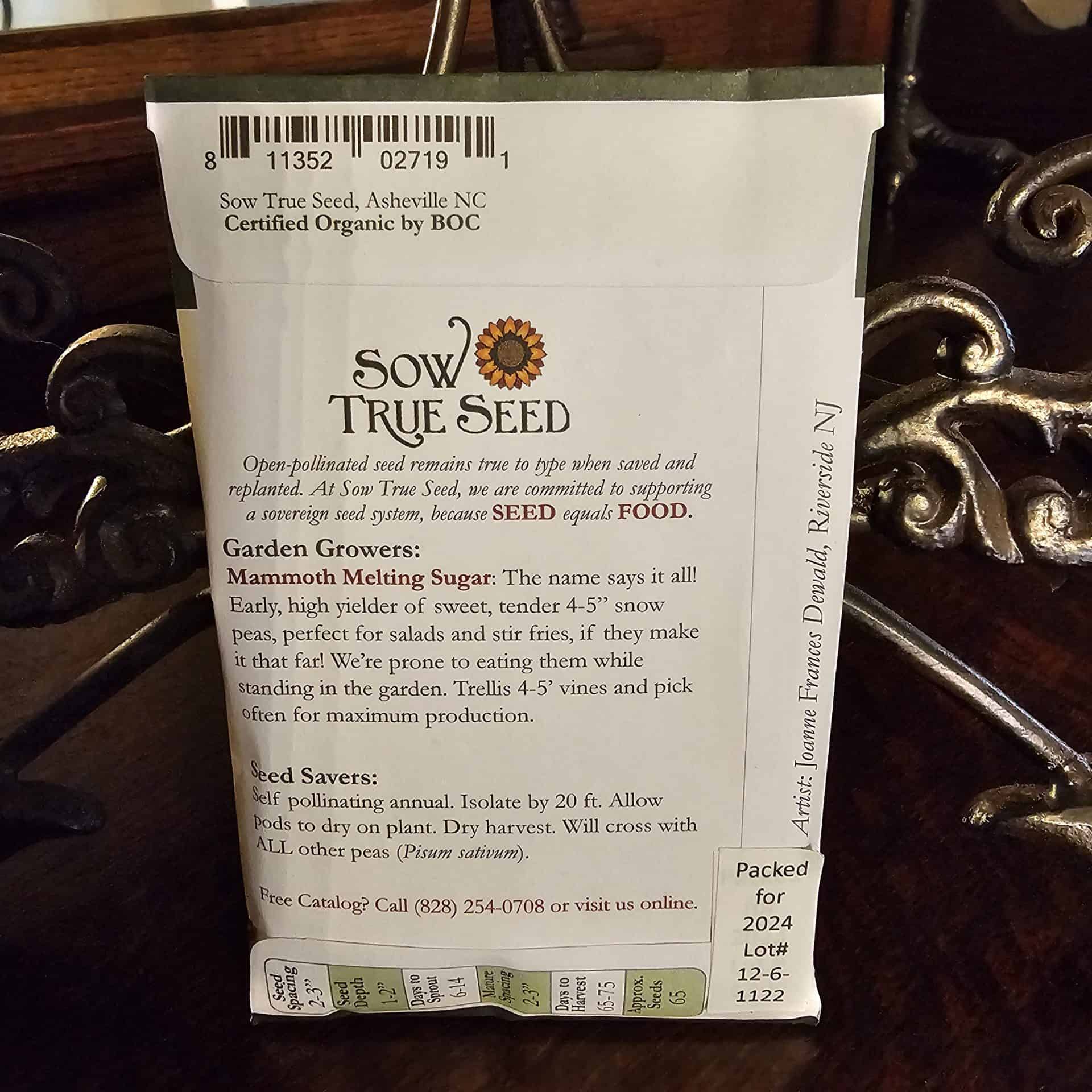 Oh, why say anything else with a name as wonderful as that? Early, high yielder of sweet, tender 4-5″ snow peas. Trellis 4-5′ vines for maximum production.