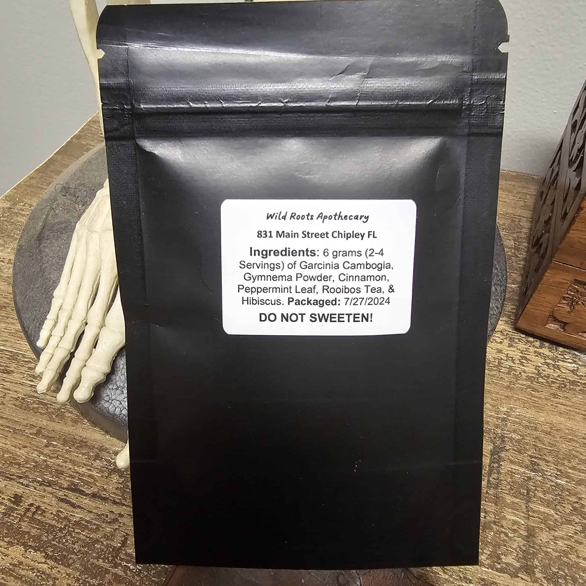 Ingredients: Sample 6 grams (2-4 Servings) of Garcinia Cambogia, Gymnema Powder, Cinnamon, Peppermint Leaf, Rooibos Tea, & Hibiscus. Available in 10 & 20 Cups (10 Cups = 38 Grams and 20 Cups = 76 Grams).Â